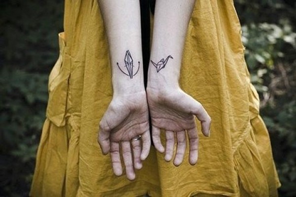 女性手臂千纸鹤刺青_女生纹身图案大全_纹身图吧