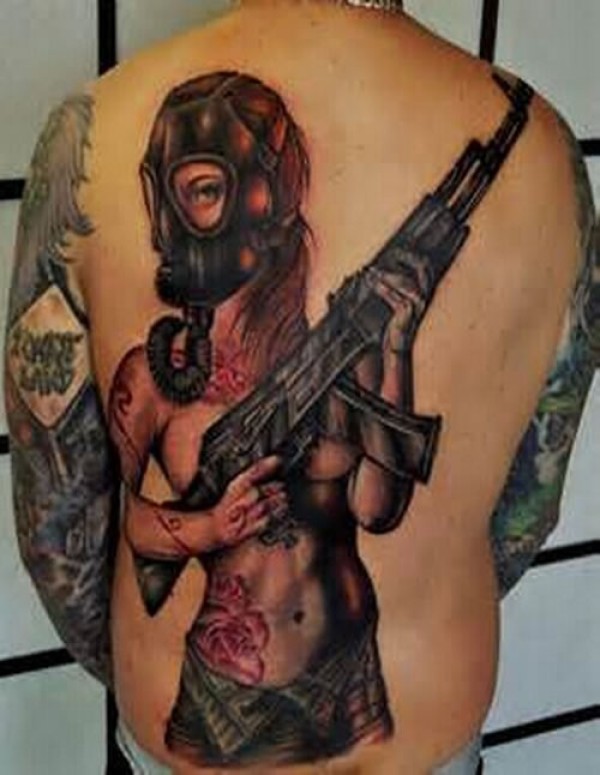手拿重型武器的美女战士图案纹身_女生纹身图案大全_纹身图吧