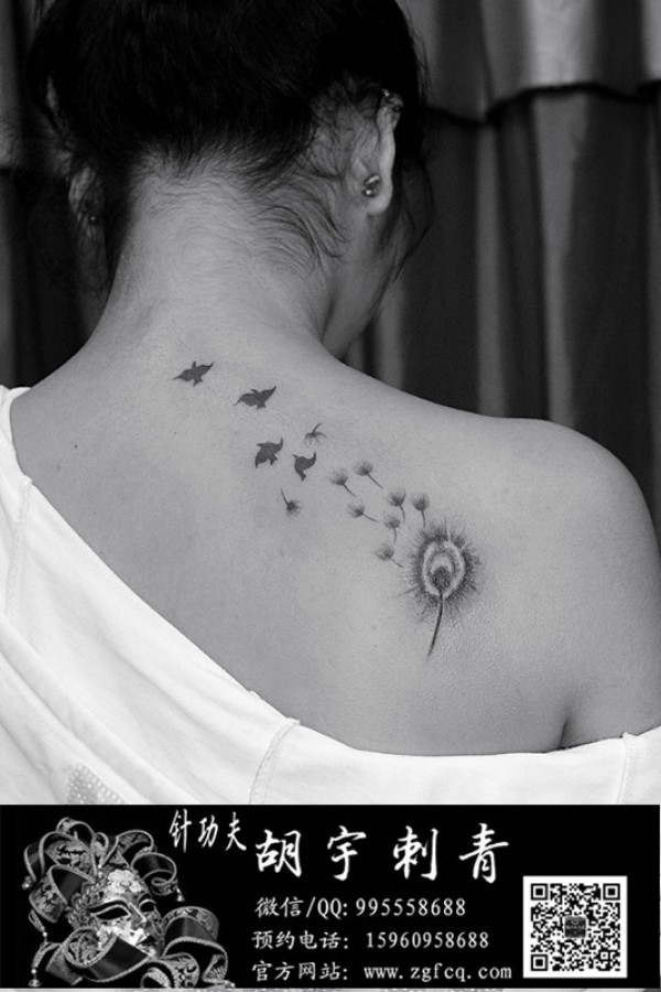 胡宇精选纹身作品图鉴赏美女侧背上的蒲公英图_女生纹身图案大全_纹身图吧