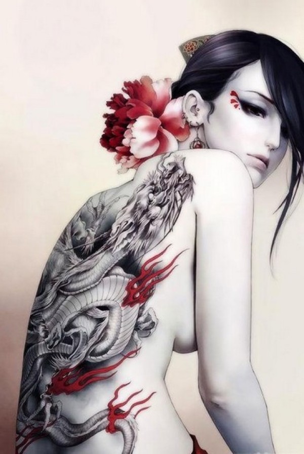 女生后背腾龙纹身,非常不错的视觉模拟图_女生纹身图案大全_纹身图吧
