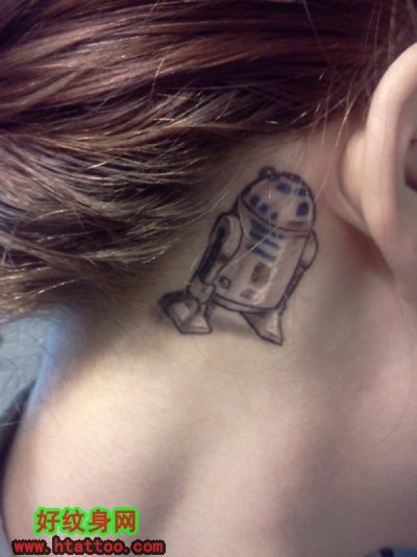 女生耳根后安卓机器人纹身_女生纹身图案大全_纹身图吧
