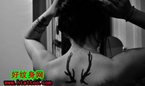 女生背部可爱鹿角纹身_女生纹身图案大全_纹身图吧