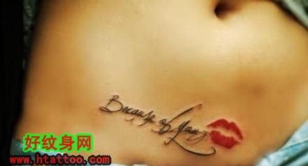 女生腹部性感红唇时尚英文纹身_女生纹身图案大全_纹身图吧