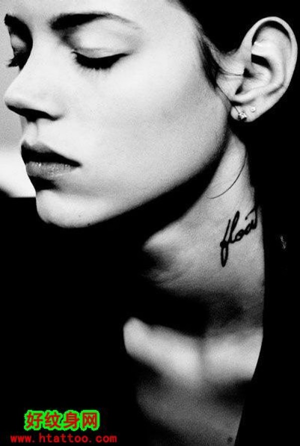欧美女生颈部性感英文字符时尚纹身_女生纹身图案大全_纹身图吧