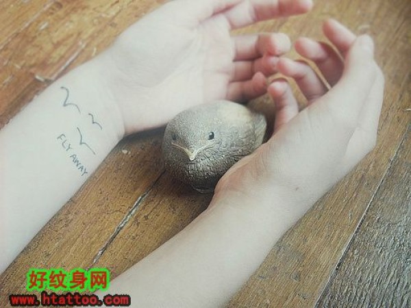 唯美女生手臂小鸟英文意境纹身_女生纹身图案大全_纹身图吧