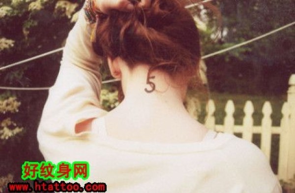 女生颈部个性数字5时尚纹身_女生纹身图案大全_纹身图吧