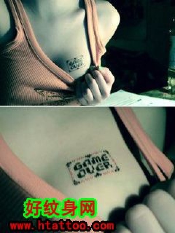 女生胸前个性字符性感纹身_女生纹身图案大全_纹身图吧