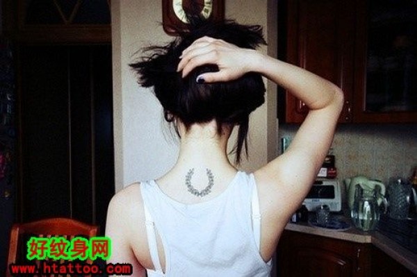 女生颈部月牙个性纹身_女生纹身图案大全_纹身图吧