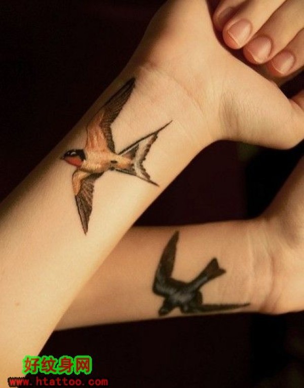 女生双臂燕子纹身_女生纹身图案大全_纹身图吧