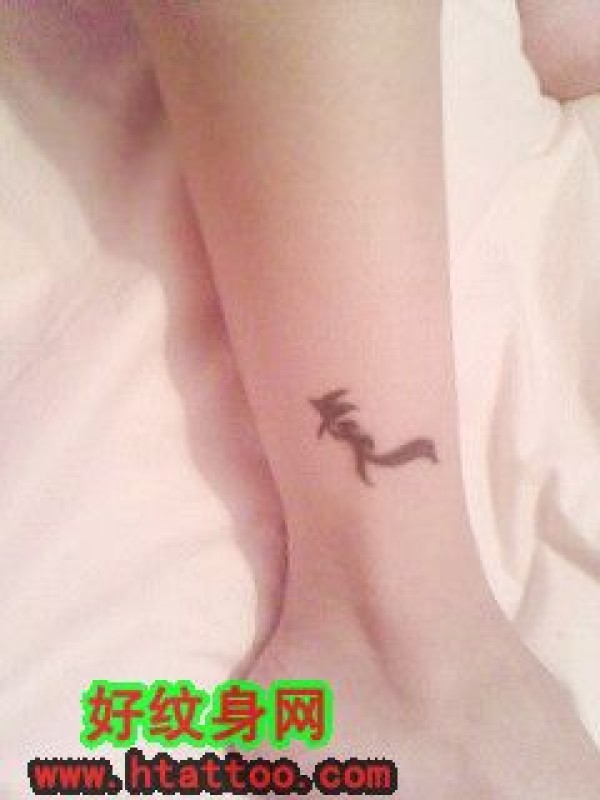 女生脚部时尚狸猫黑白纹身_女生纹身图案大全_纹身图吧