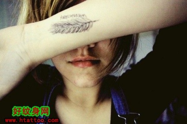欧美女生手臂羽毛唯美纹身_女生纹身图案大全_纹身图吧