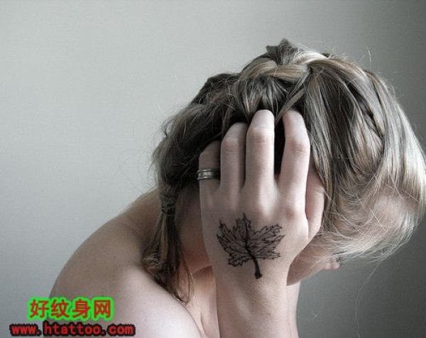 欧美女生手背黑白枫叶个性纹身_女生纹身图案大全_纹身图吧