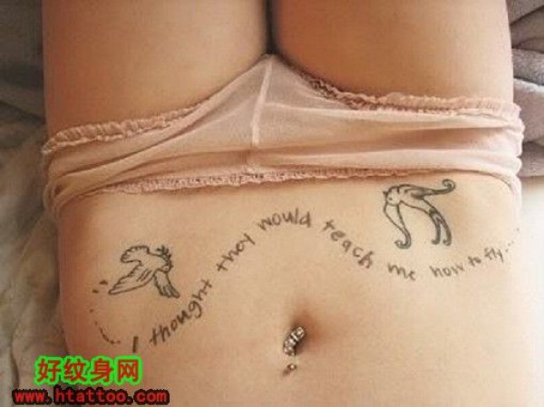 唯美女生腹部小鸟纹身_女生纹身图案大全_纹身图吧