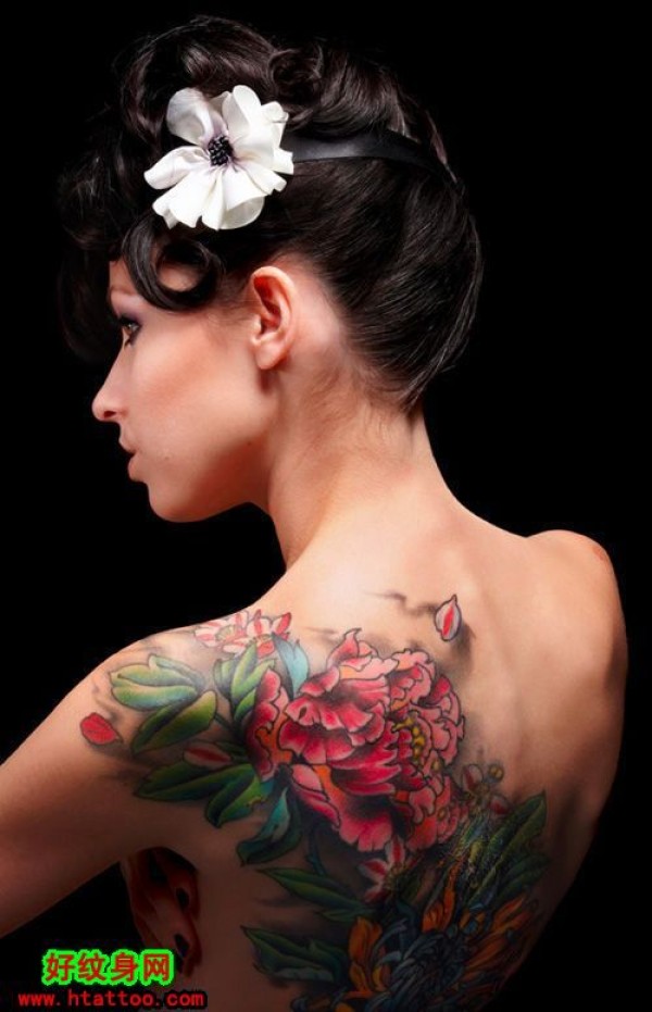 女生背部牡丹花纹身_女生纹身图案大全_纹身图吧