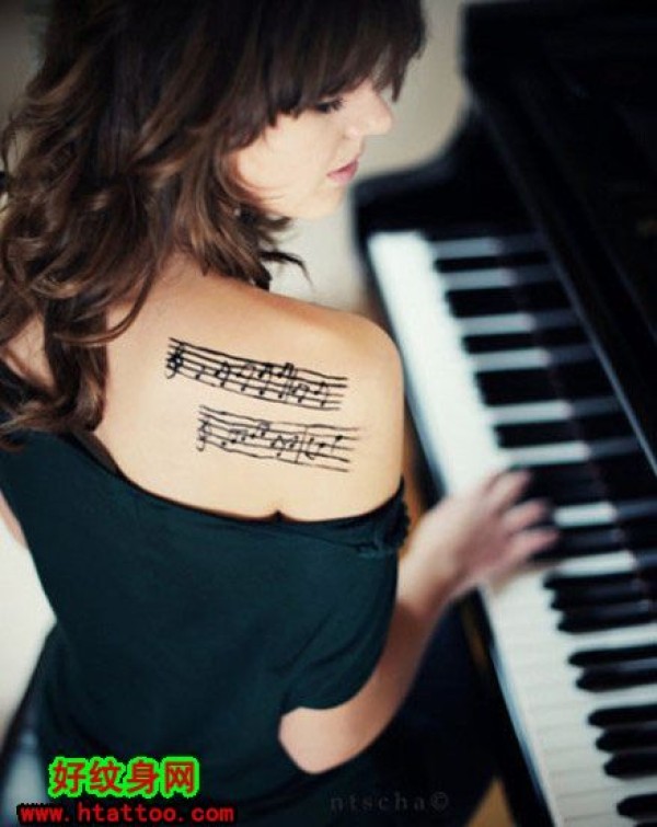 女生肩部音符纹身_女生纹身图案大全_纹身图吧