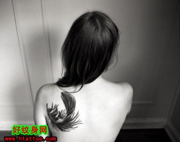 女生背部羽毛纹身_女生纹身图案大全_纹身图吧