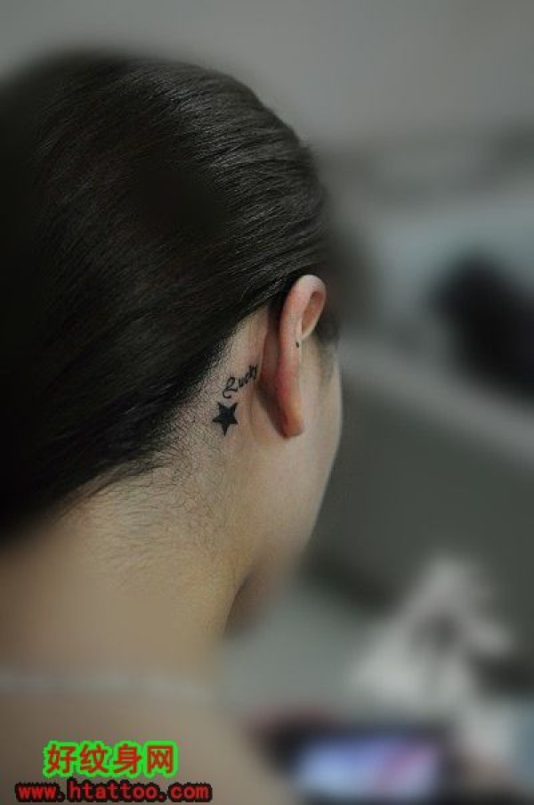 女生耳根后星星纹身_女生纹身图案大全_纹身图吧