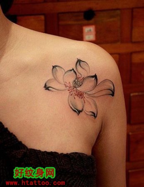 女生肩部莲花纹身_女生纹身图案大全_纹身图吧
