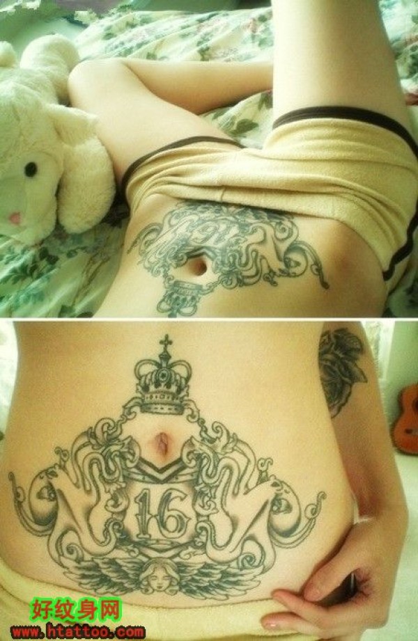 女生腹部皇冠纹身_女生纹身图案大全_纹身图吧
