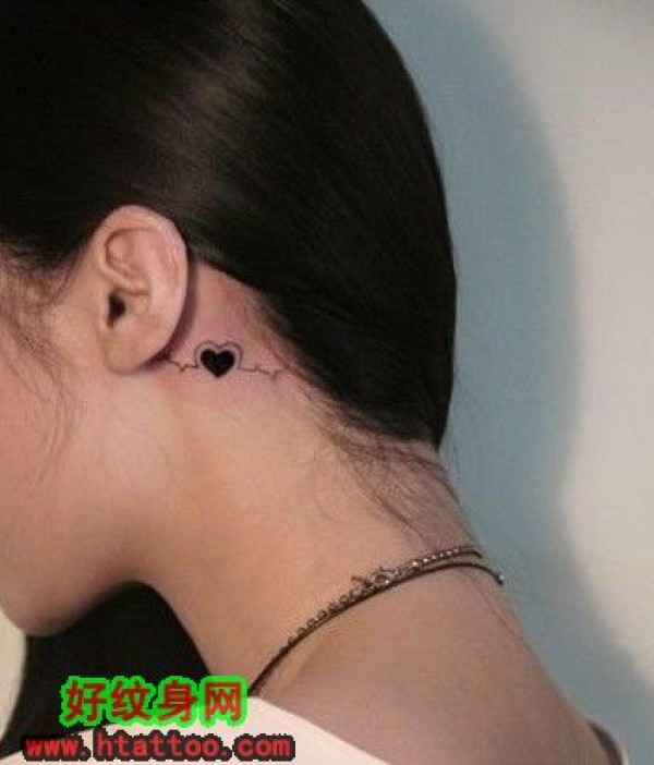 女生耳根后心形纹身_女生纹身图案大全_纹身图吧