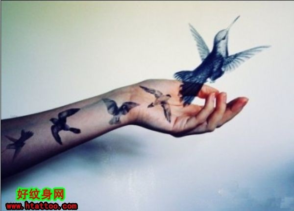 女生手臂小鸟飞翔纹身_女生纹身图案大全_纹身图吧