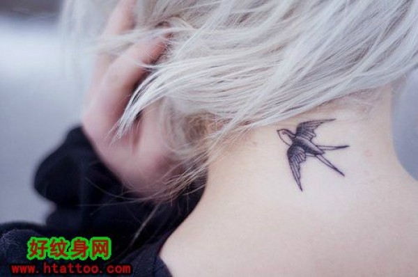 女生颈部小燕子纹身_女生纹身图案大全_纹身图吧