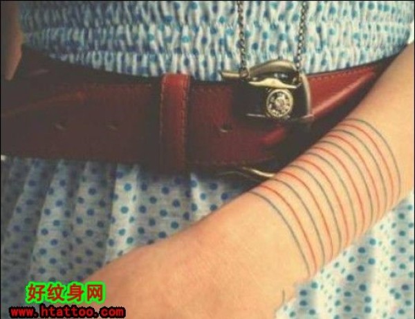 女生手臂唯美彩色线条时尚纹身_女生纹身图案大全_纹身图吧