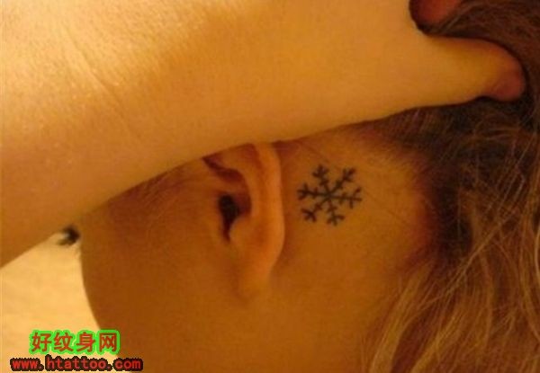 女生耳根后雪花简约唯美纹身_女生纹身图案大全_纹身图吧