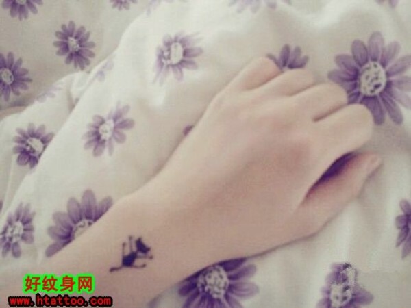 女生手臂黑色小猫咪可爱小清新纹身_女生纹身图案大全_纹身图吧