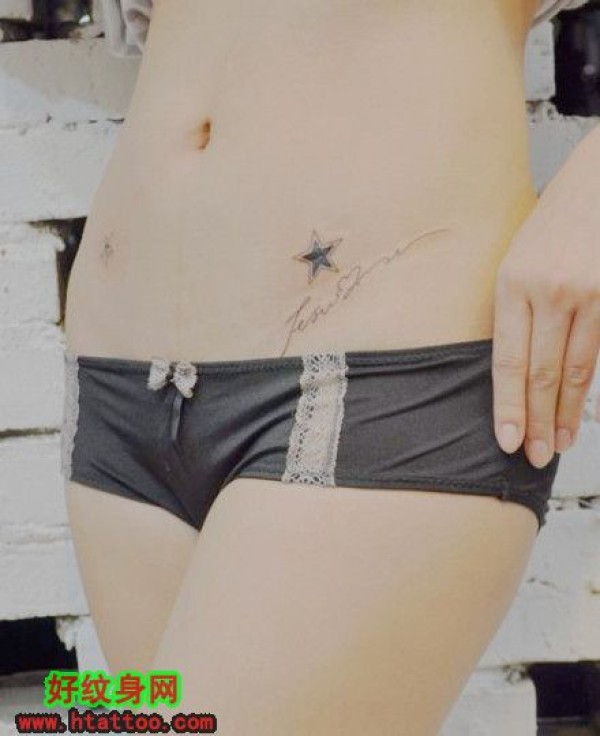 女生腹部唯美星星时尚纹身_女生纹身图案大全_纹身图吧