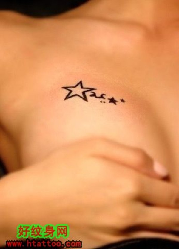 性感女生胸部星星唯美时尚纹身_女生纹身图案大全_纹身图吧