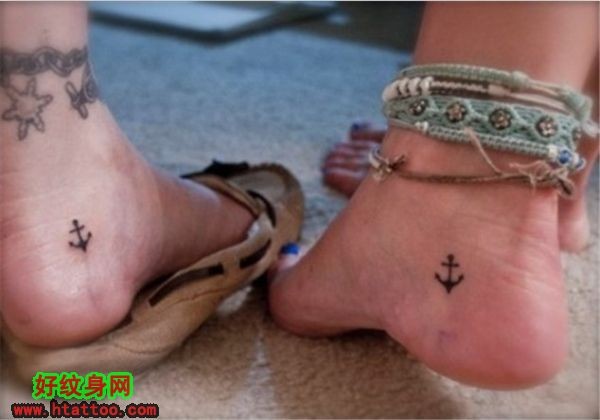 女生脚部黑色锚简约时尚唯美纹身_女生纹身图案大全_纹身图吧