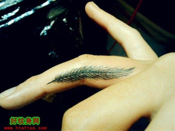 女生手指黑色羽毛唯美意境纹身_女生纹身图案大全_纹身图吧
