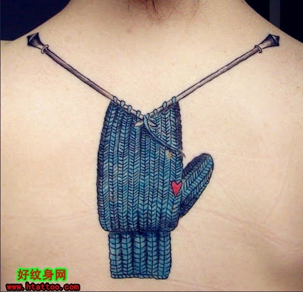 女生背部织毛线另类彩色可爱纹身_女生纹身图案大全_纹身图吧
