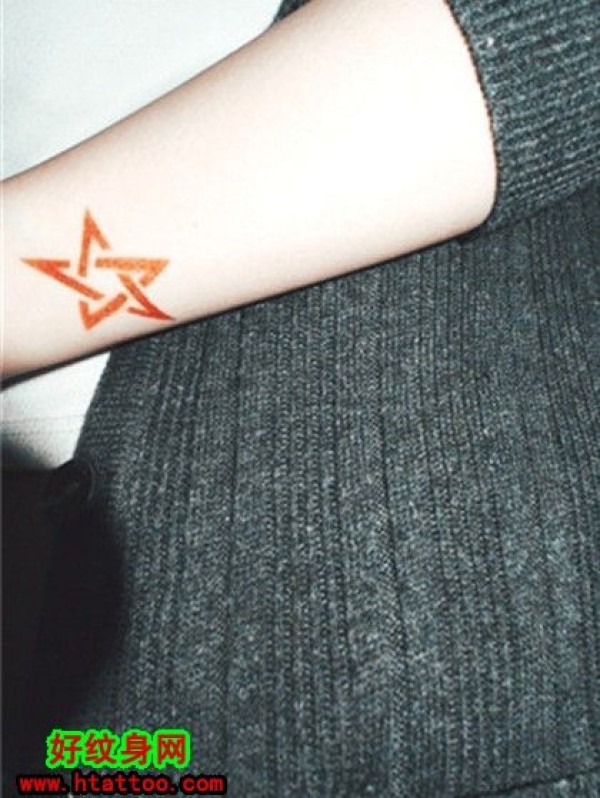 女生手臂红色五角星时尚个性纹身_女生纹身图案大全_纹身图吧