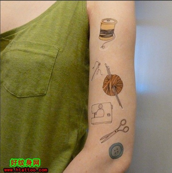 女生手臂彩色另类织道具纹身_女生纹身图案大全_纹身图吧