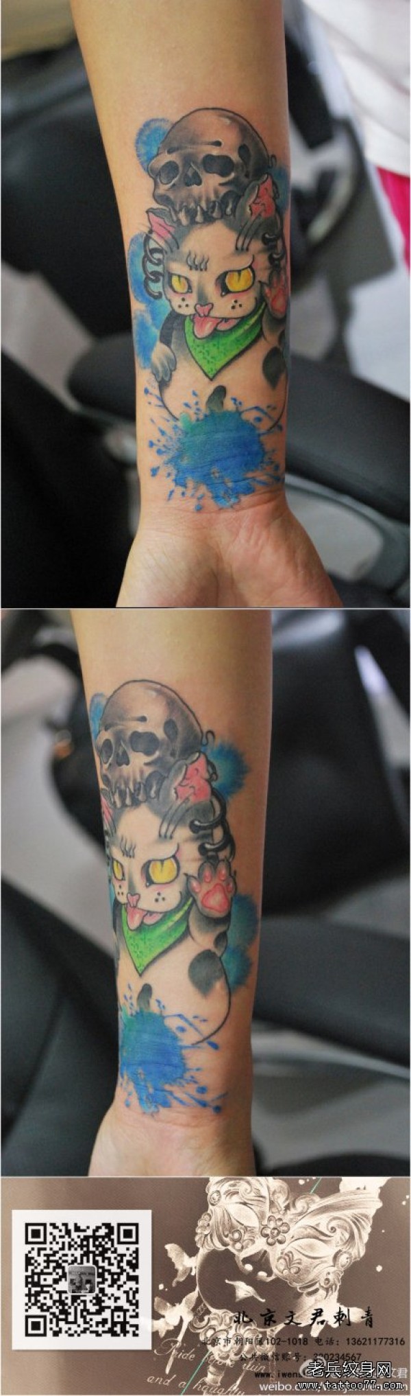 女生手腕潮流可爱的招财猫纹身图案_女生纹身图案大全_纹身图吧