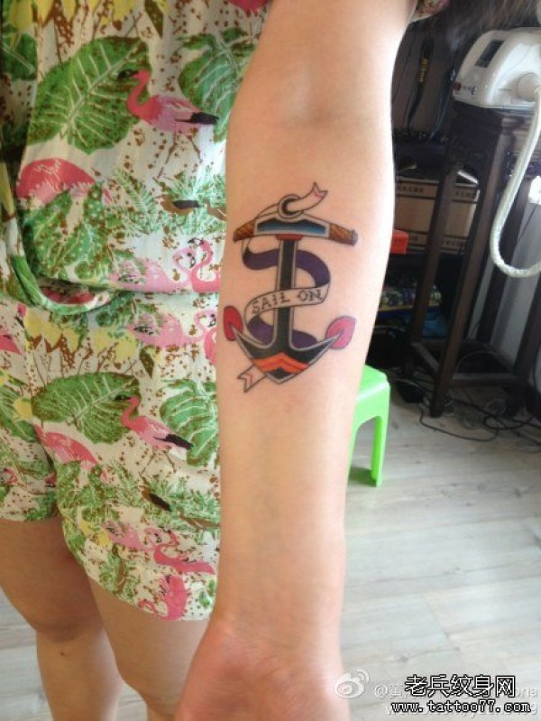 女生手臂唯美好看的船锚纹身图案_女生纹身图案大全_纹身图吧