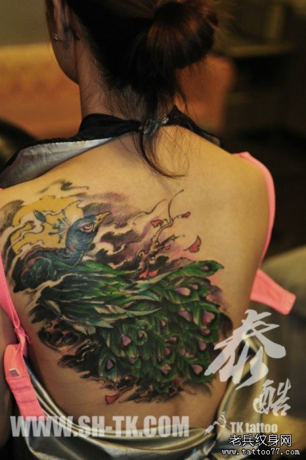 女生后背漂亮的彩色孔雀纹身图案_女生纹身图案大全_纹身图吧