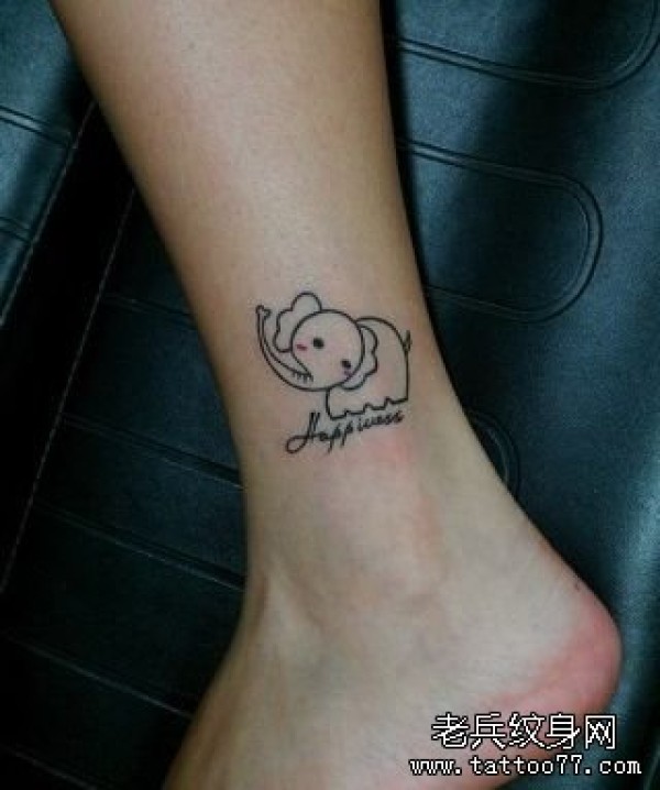 女生脚踝处可爱的小象纹身图案_女生纹身图案大全_纹身图吧
