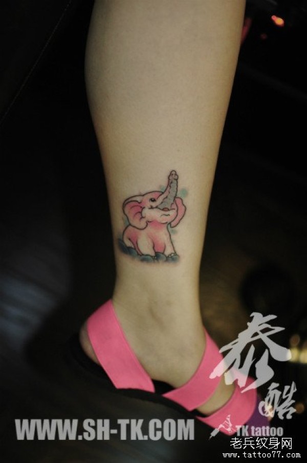 女生腿部可爱很萌的小象纹身图案_女生纹身图案大全_纹身图吧