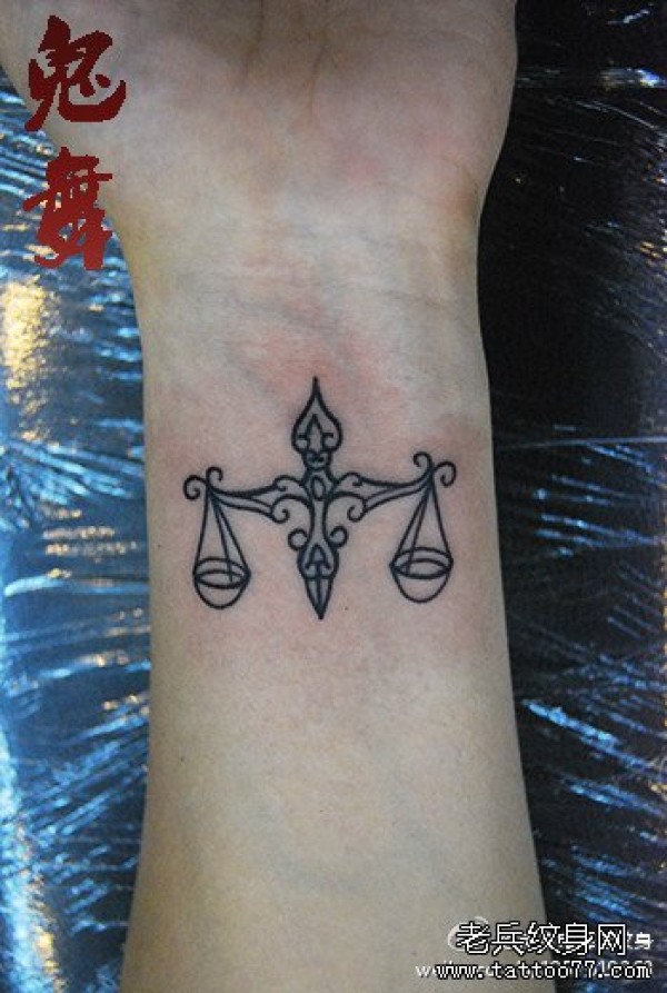 女生手腕一款经典的天秤座符号纹身图案_女生纹身图案大全_纹身图吧
