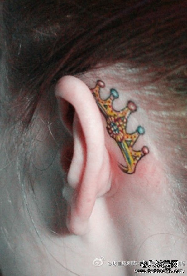 女生耳部小巧时尚的皇冠纹身图案_女生纹身图案大全_纹身图吧
