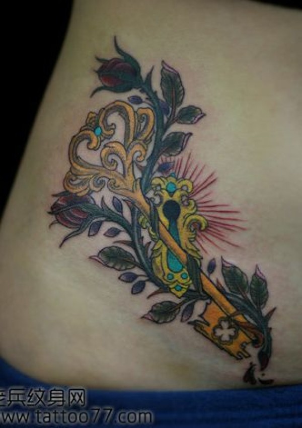 美女腹部好看的钥匙纹身图案_女生纹身图案大全_纹身图吧