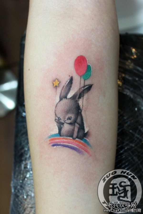 女生手臂可爱的拿气球的小兔子纹身图案_女生纹身图案大全_纹身图吧