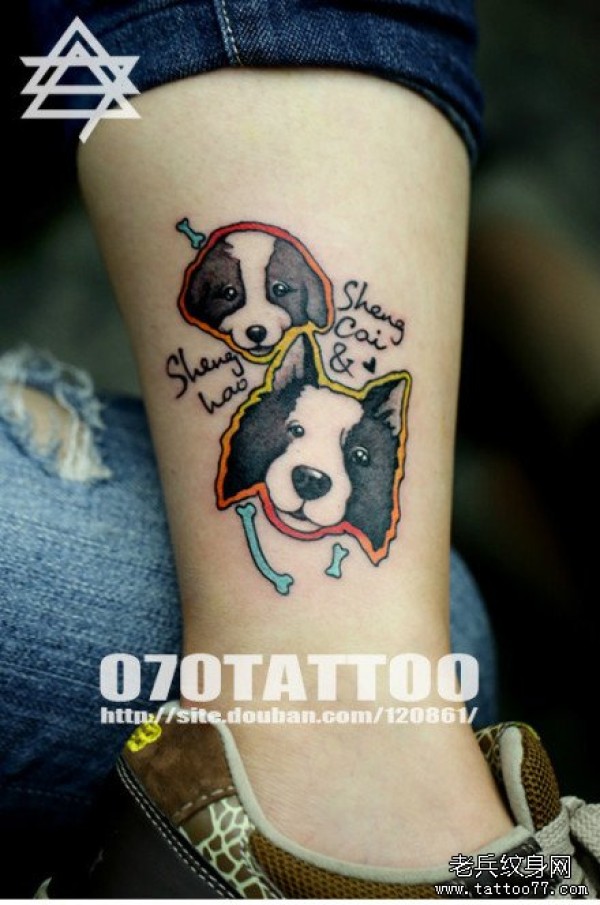 女生腿部可爱的小狗纹身图案_女生纹身图案大全_纹身图吧