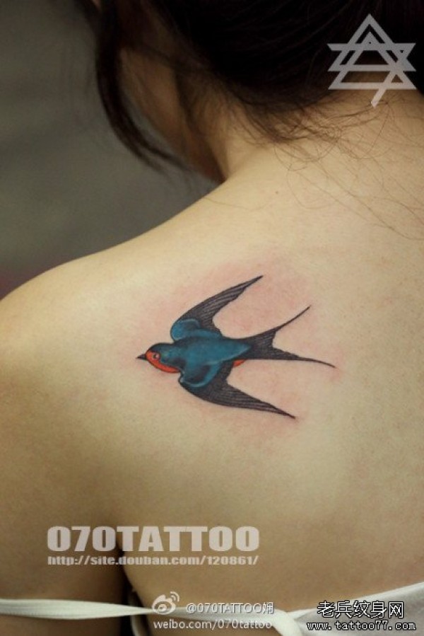 女生肩背彩色小燕子纹身图案_女生纹身图案大全_纹身图吧