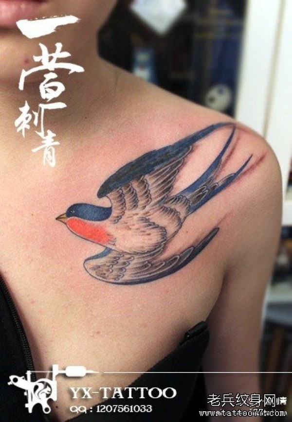 女生胸前漂亮潮流的小燕子纹身图案_女生纹身图案大全_纹身图吧