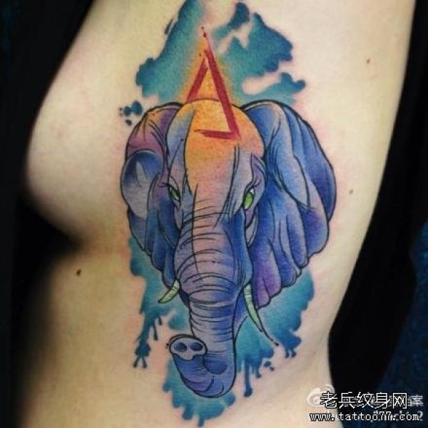 美女侧胸经典潮流的大象纹身图案_女生纹身图案大全_纹身图吧