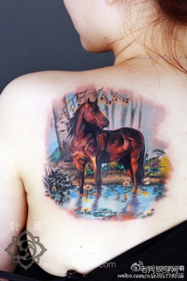 女生后背经典的欧美彩色马纹身图案_女生纹身图案大全_纹身图吧